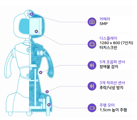 음향인식 센서 : '살려줘'. '도와줘' 등의 긴박한 소리와 깨지는 소리, 넘어지는 소리 등을 인식하고 119, 보호자 등에 연락을 합니다.